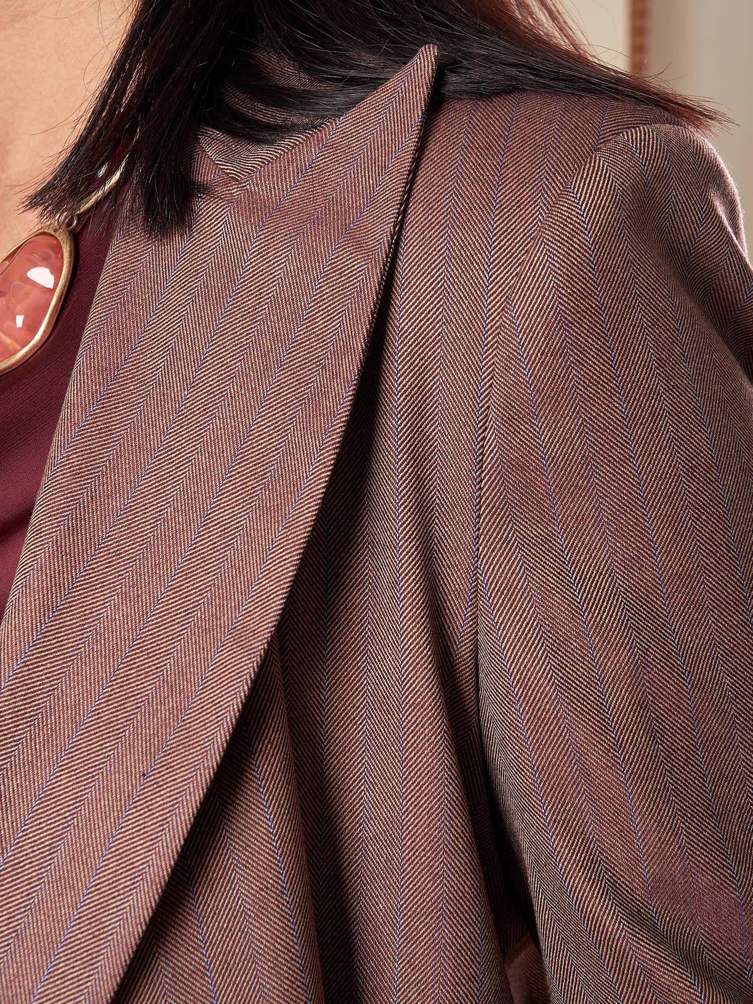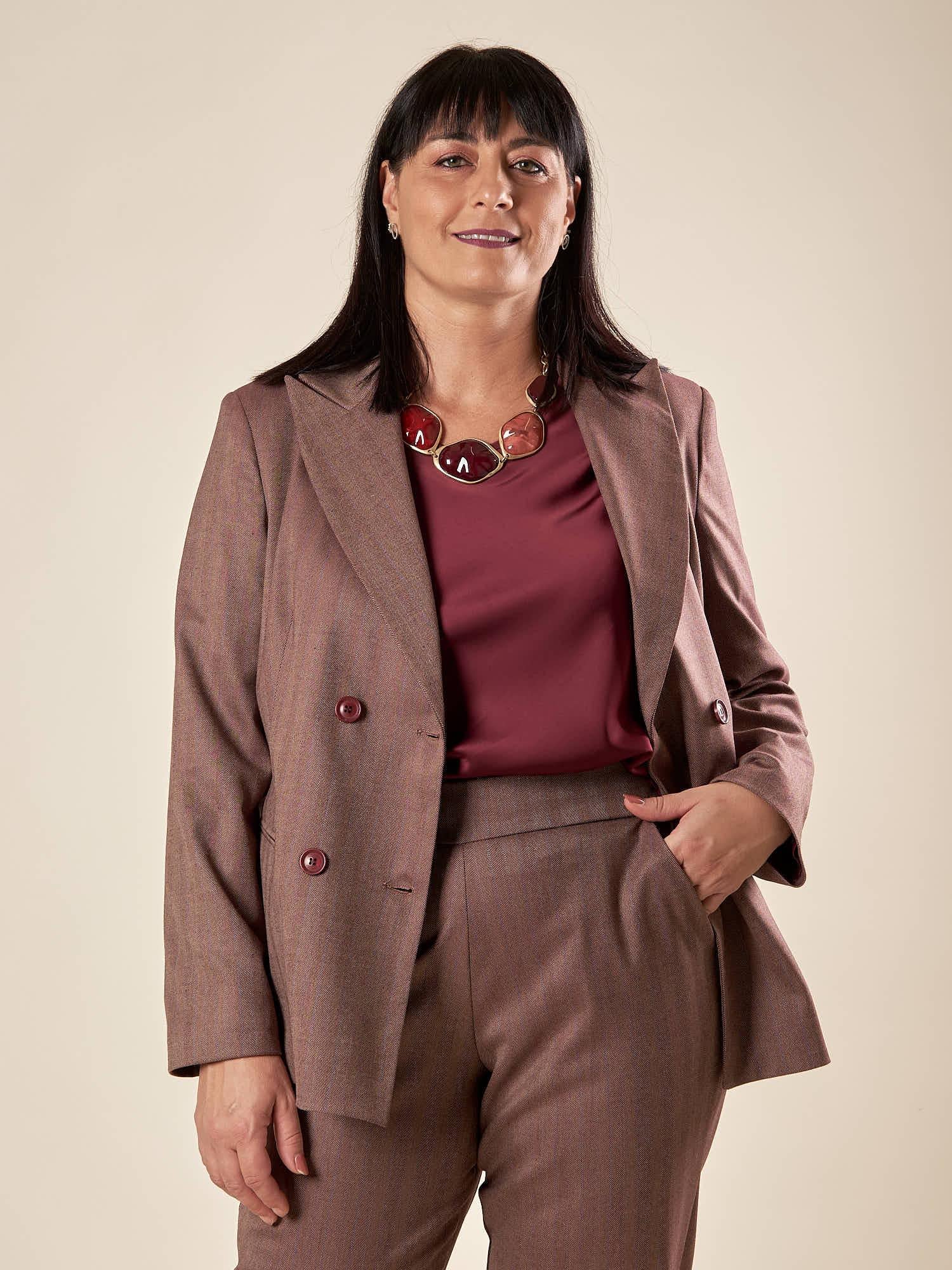 Giacca Donna Curvy doppiopetto in tessuto spigato con riga gessata. F646YBFDEMETRA AMARONE Lizalù