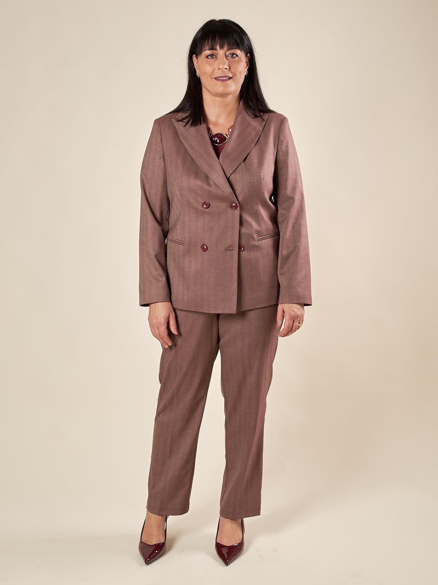 Giacca Donna Curvy doppiopetto in tessuto spigato con riga gessata.
