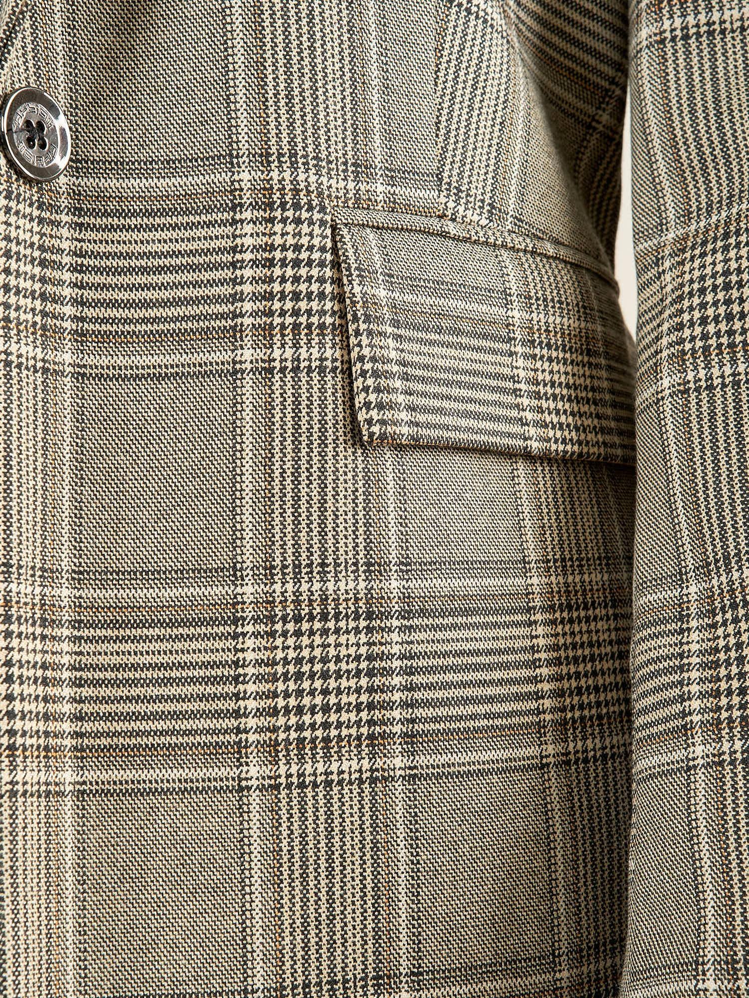 Giacca donna monopetto in Principe di Galles. Eleganza sartoriale e femminilità contemporanea. GI003812 BEIGE/MORO ARTIGLI
