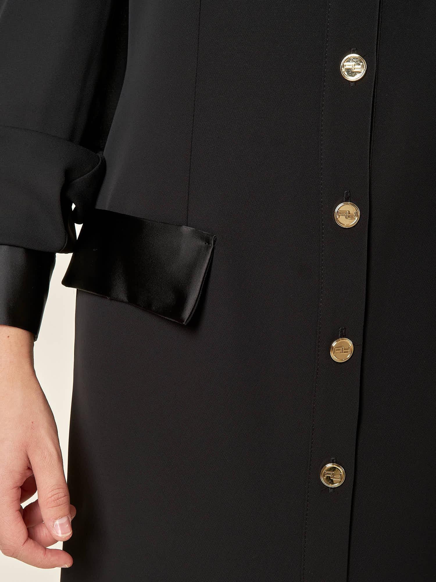 Abito midi donna con abbottonatura frontale e dettagli in raso. Eleganza romantica e stile raffinato. AB003215 NERO ARTIGLI