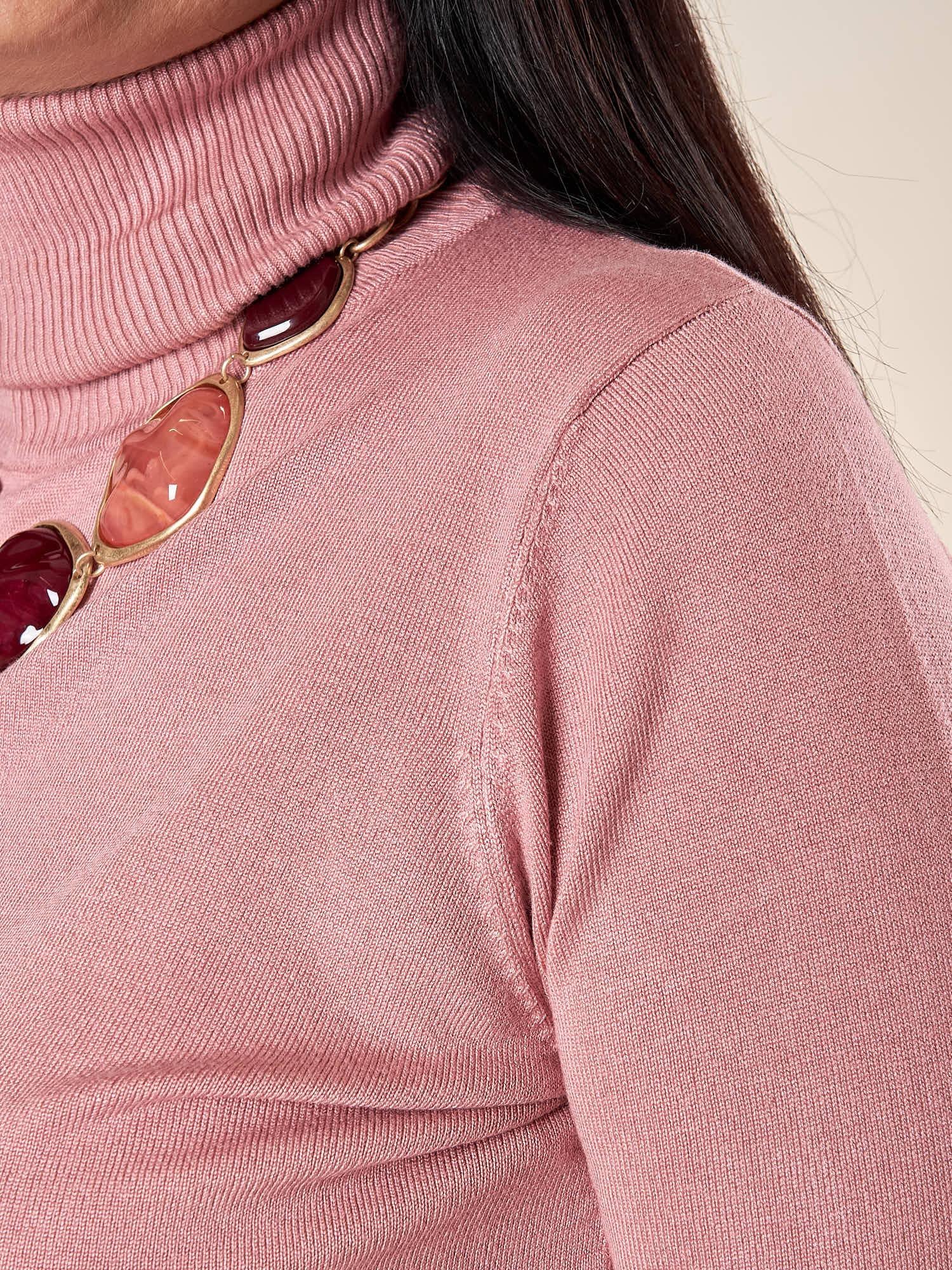 Il dolcevita curvy in viscosa è un must-have che si abbina con pantaloni, gonne e jeans, adattandosi facilmente a look da giorno e da sera.