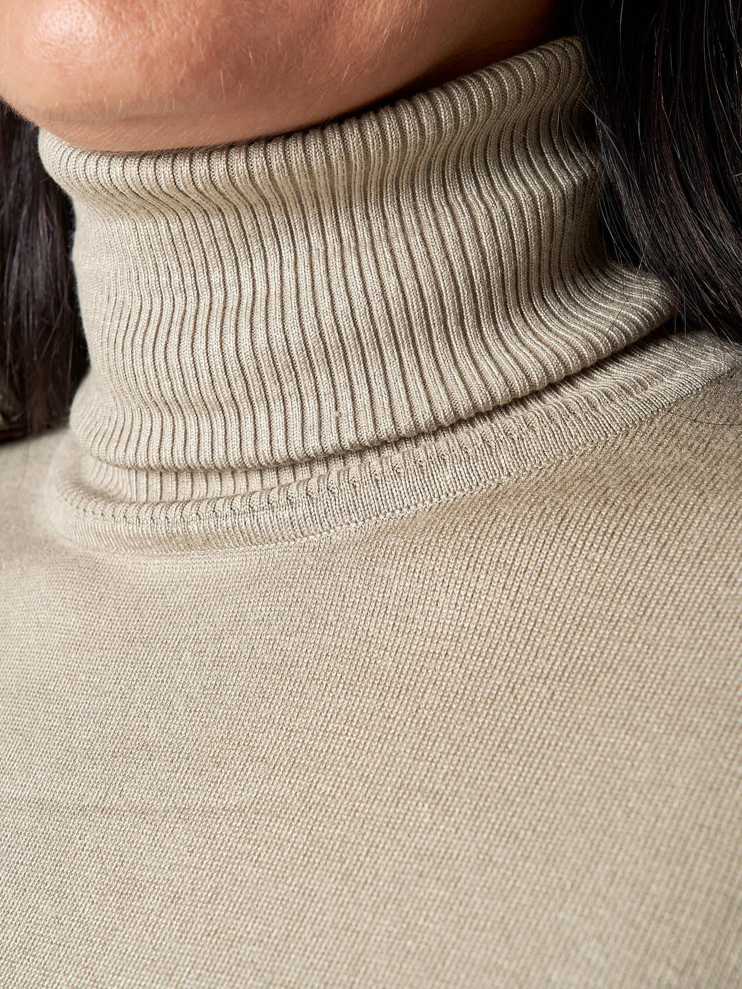 Il dolcevita curvy in viscosa è un must-have che si abbina con pantaloni, gonne e jeans, adattandosi facilmente a look da giorno e da sera.