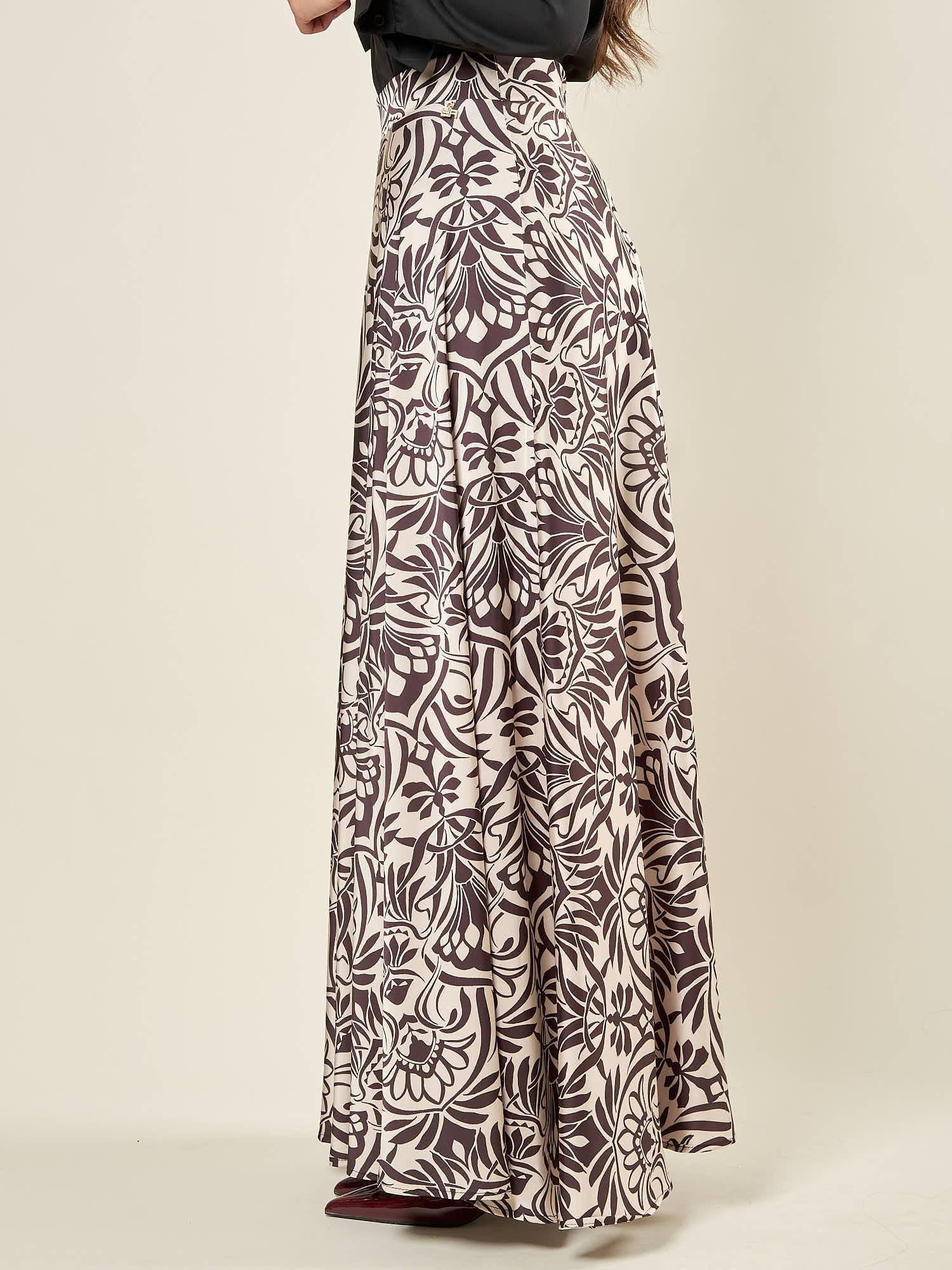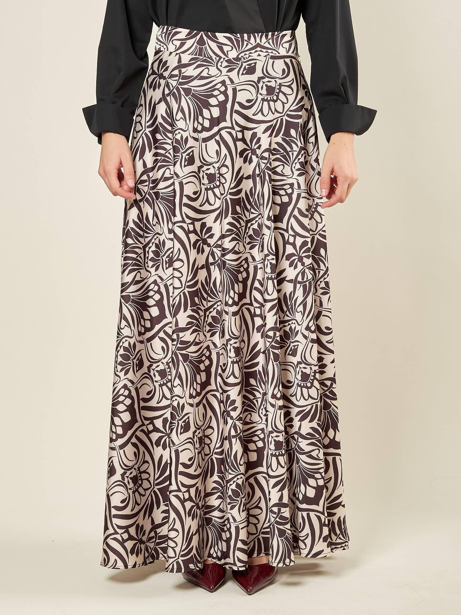 Gonna donna lunga in fantasia nero e avorio.
