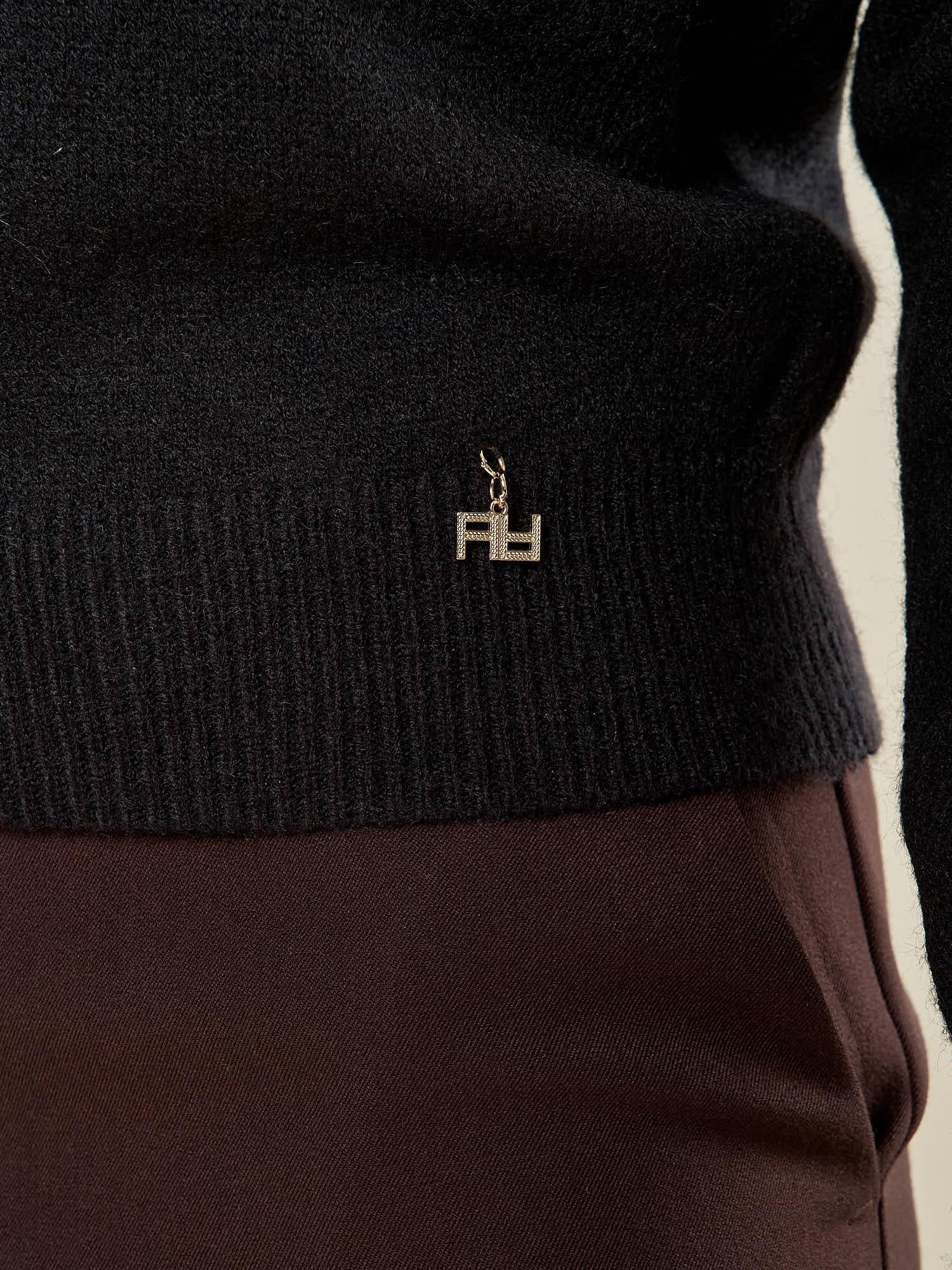 Maglia donna manica lunga con collo alto e applicazioni strass. Eleganza brillante e comfort quotidiano. MA002800 NERO ARTIGLI