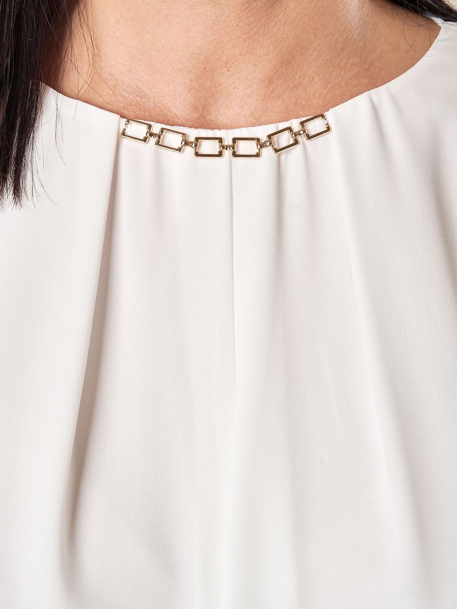 Blusa Donna Curvy Girocollo – Dettaglio in Metallo, Pience Frontali e Polsino Dritto. F708YBFSELE PANNA Lizalù