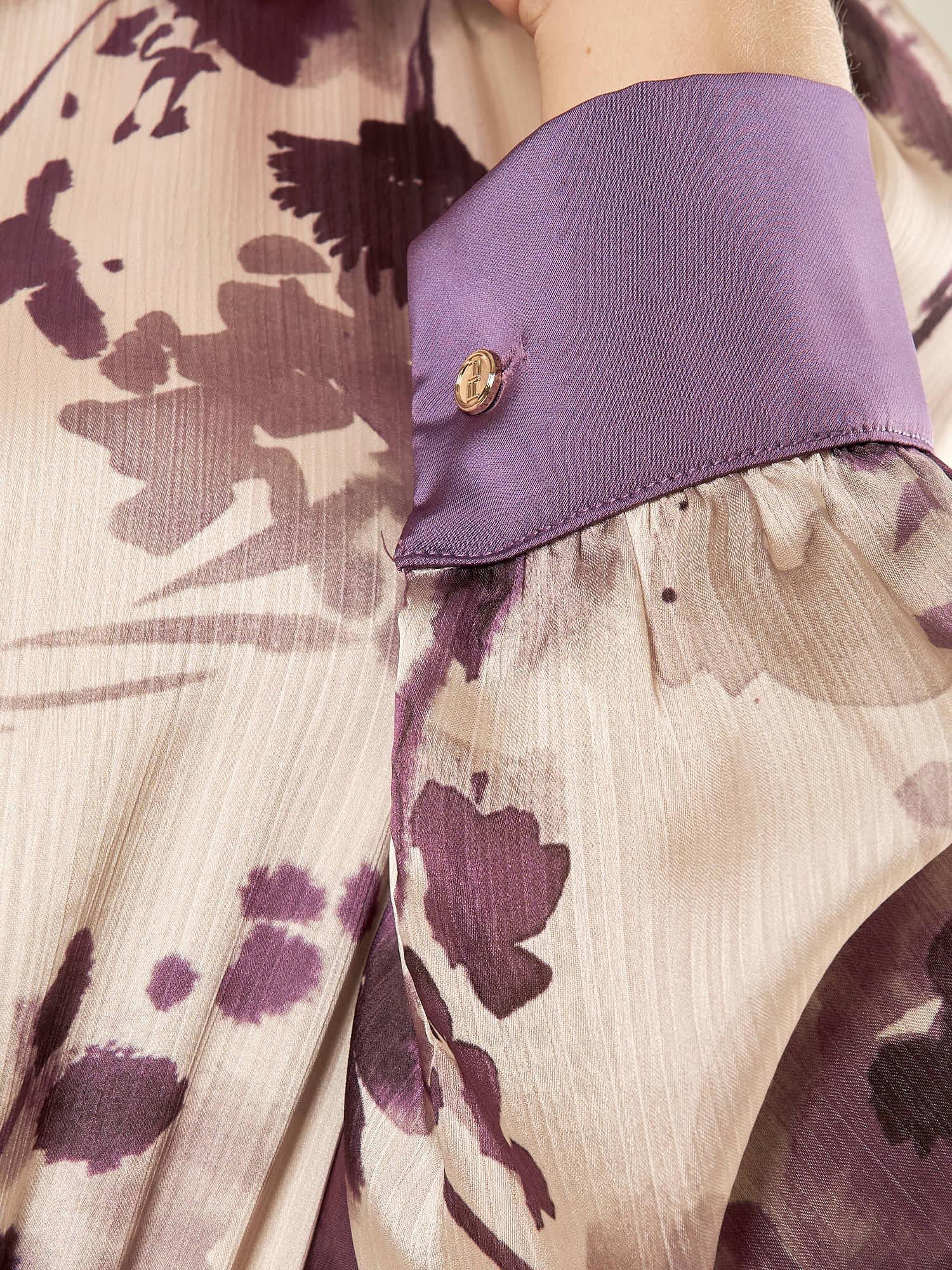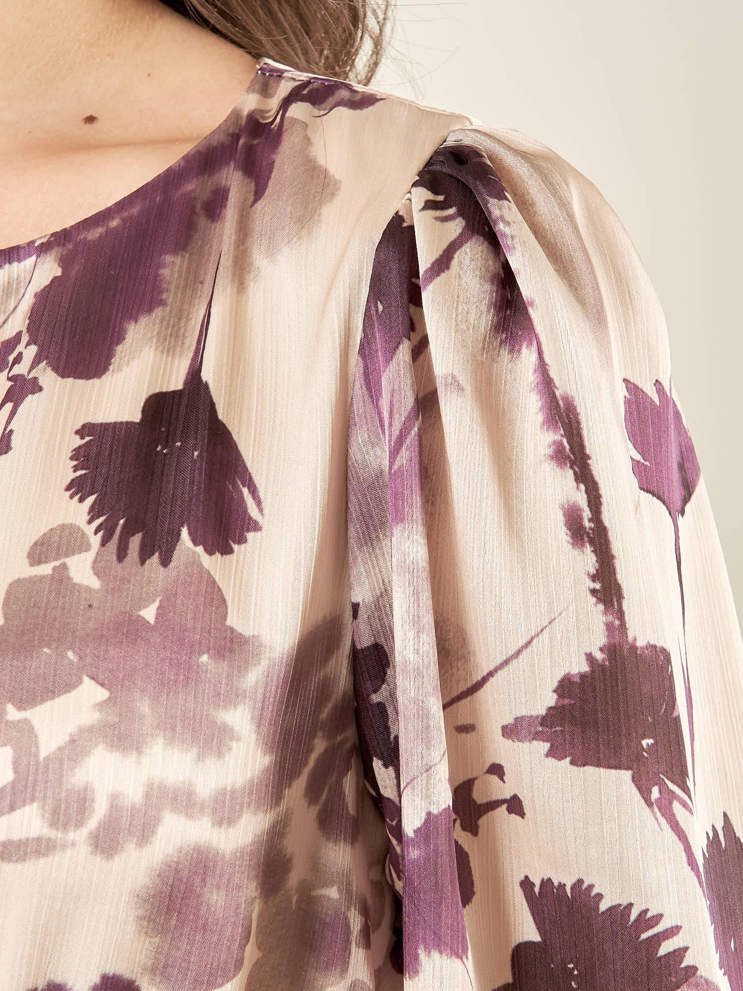 Abito donna corto in fantasia. Maniche lunghe, girocollo ed elastico in vita. AB003305 AVORIO/TROPEA ARTIGLI