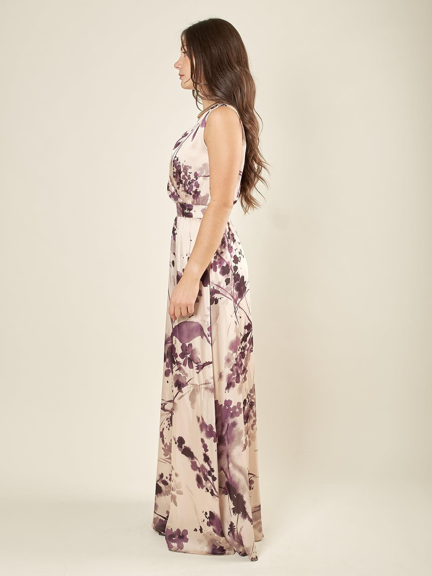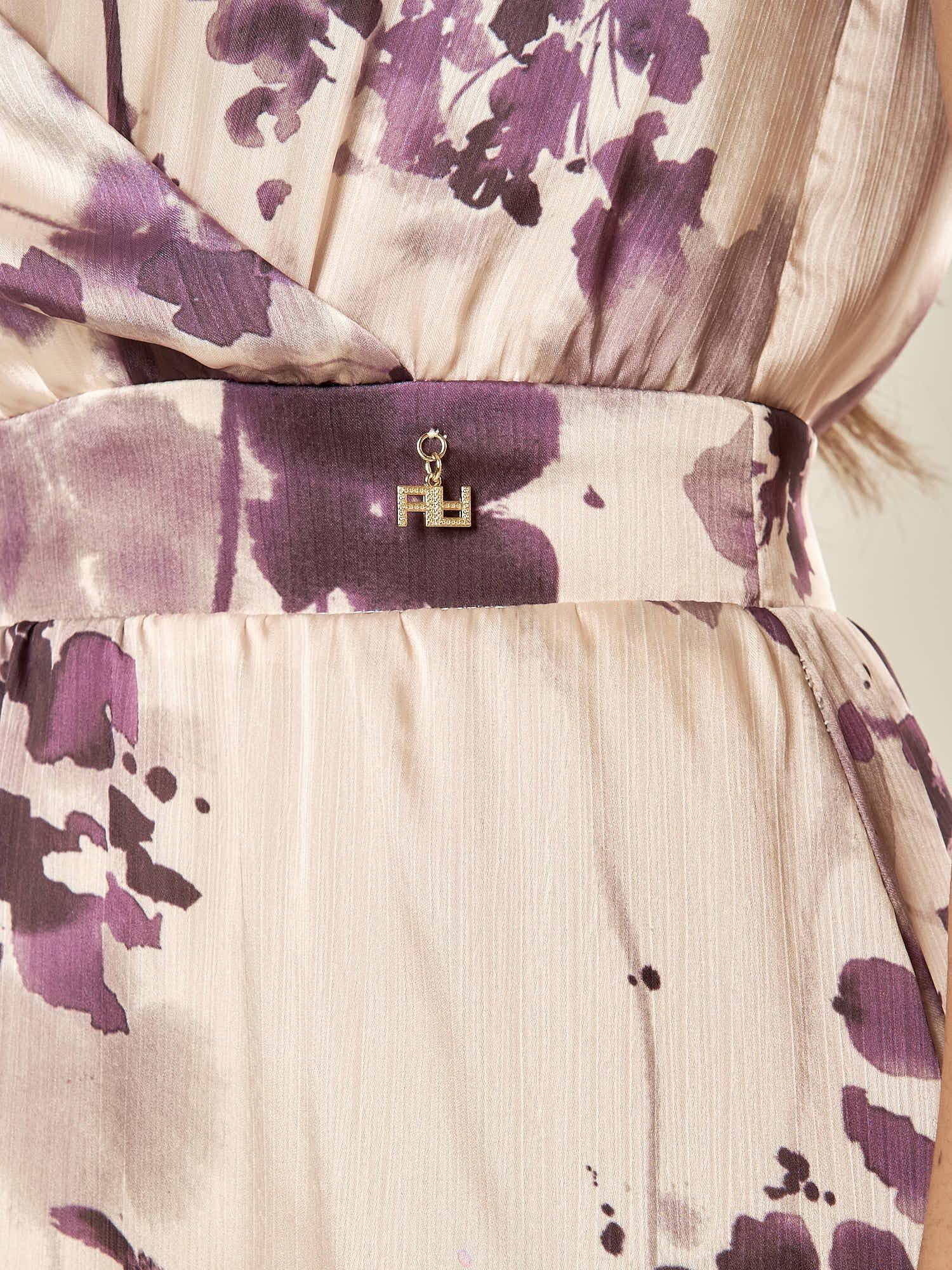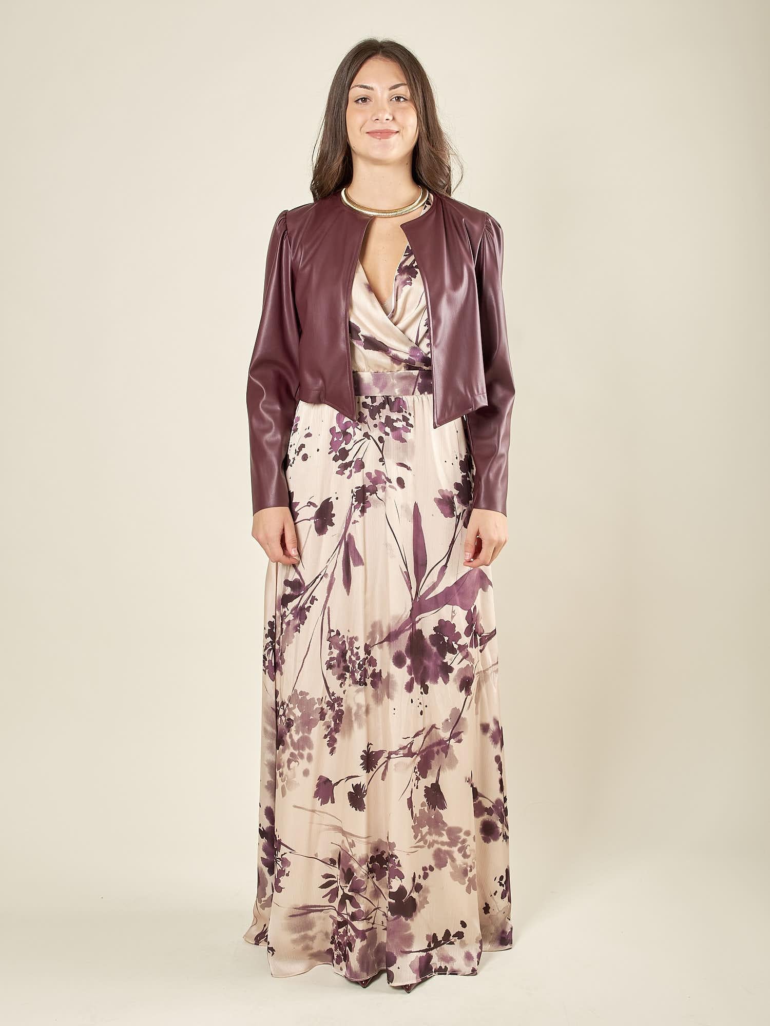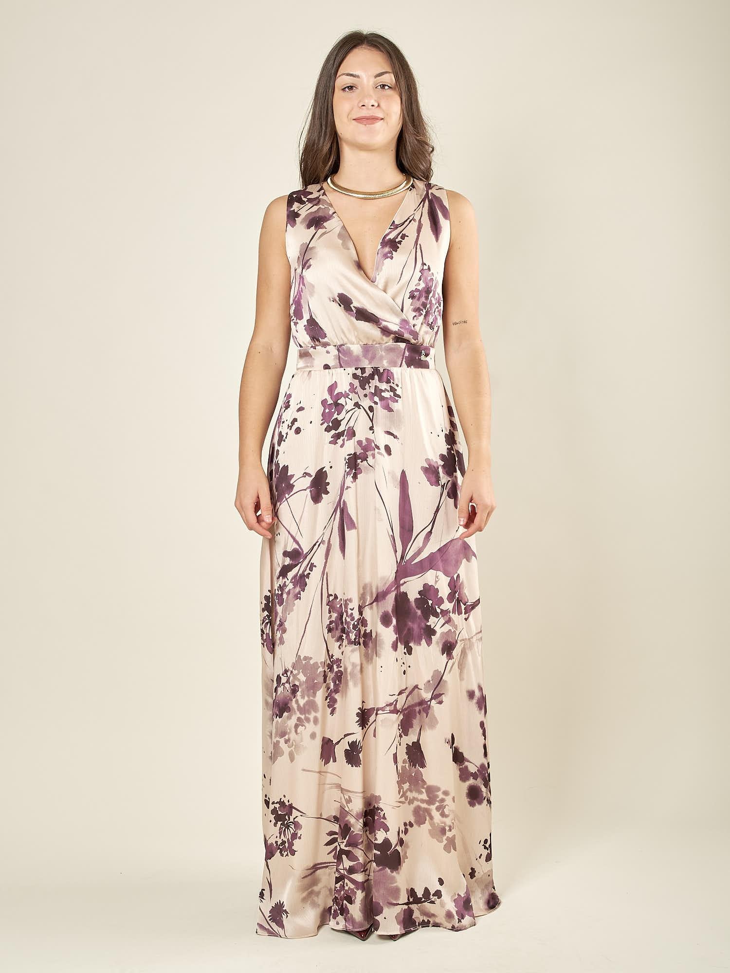 Abito lungo incrociato con scollo a V. AB003655 AVORIO/TROPEA ARTIGLI