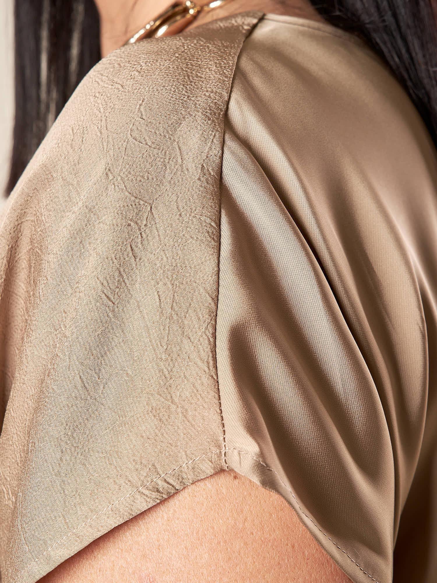 Blusa Donna Curvy Girocollo Ampio – Raso Goffrato Davanti e Spacchetto Laterale.