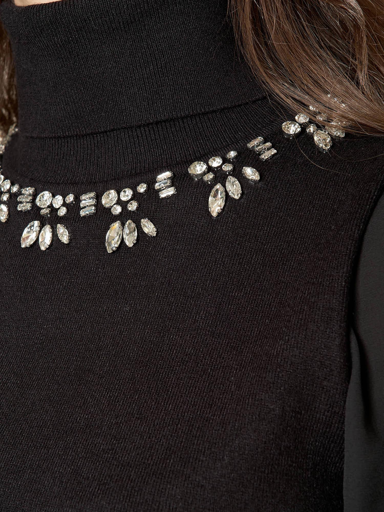 Maglia donna collo alto con pietre e maniche in georgette. MA003091 NERO ARTIGLI