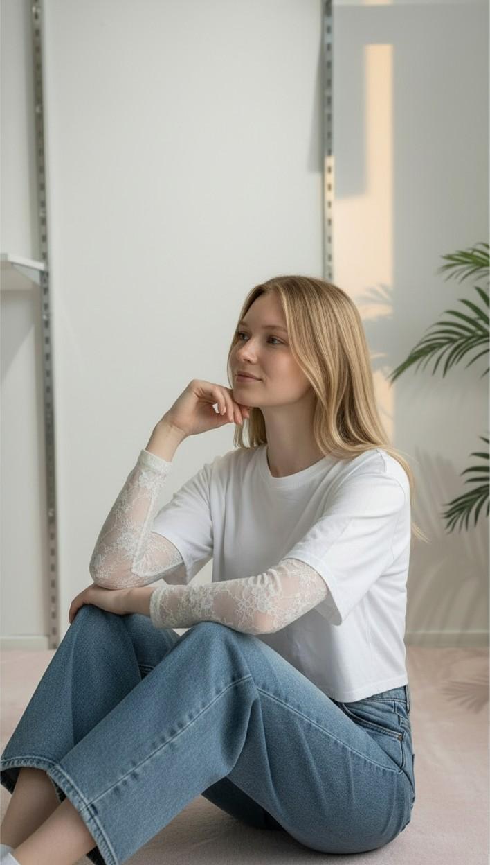 Valorizza il tuo stile quotidiano con questa t-shirt donna a manica corta ampia, abbinata a un elegante body a manica lunga in pizzo: un capo due-in-uno pensato per chi cerca comfort, femminilità e versatilità in un’unica soluzione. La t-shirt dalla vestibilità over cade morbida sul corpo, garantendo libertà di movimento e una silhouette moderna. Il design essenziale la rende ideale sia per look casual che per abbinamenti più ricercati. Sotto, il body in pizzo a manica lunga aggiunge un tocco sofisticato e raffinato, creando un raffinato gioco di trasparenze che impreziosisce l’outfit senza risultare eccessivo. Realizzato con materiali di qualità, questo capo assicura comfort per tutto il giorno e una vestibilità stabile, grazie al body che rimane perfettamente in posizione sotto la t-shirt. L’accostamento tra la linea pulita della maglia e la lavorazione delicata del pizzo rende questo capo ideale per la mezza stagione e perfetto da indossare sia di giorno che di sera.