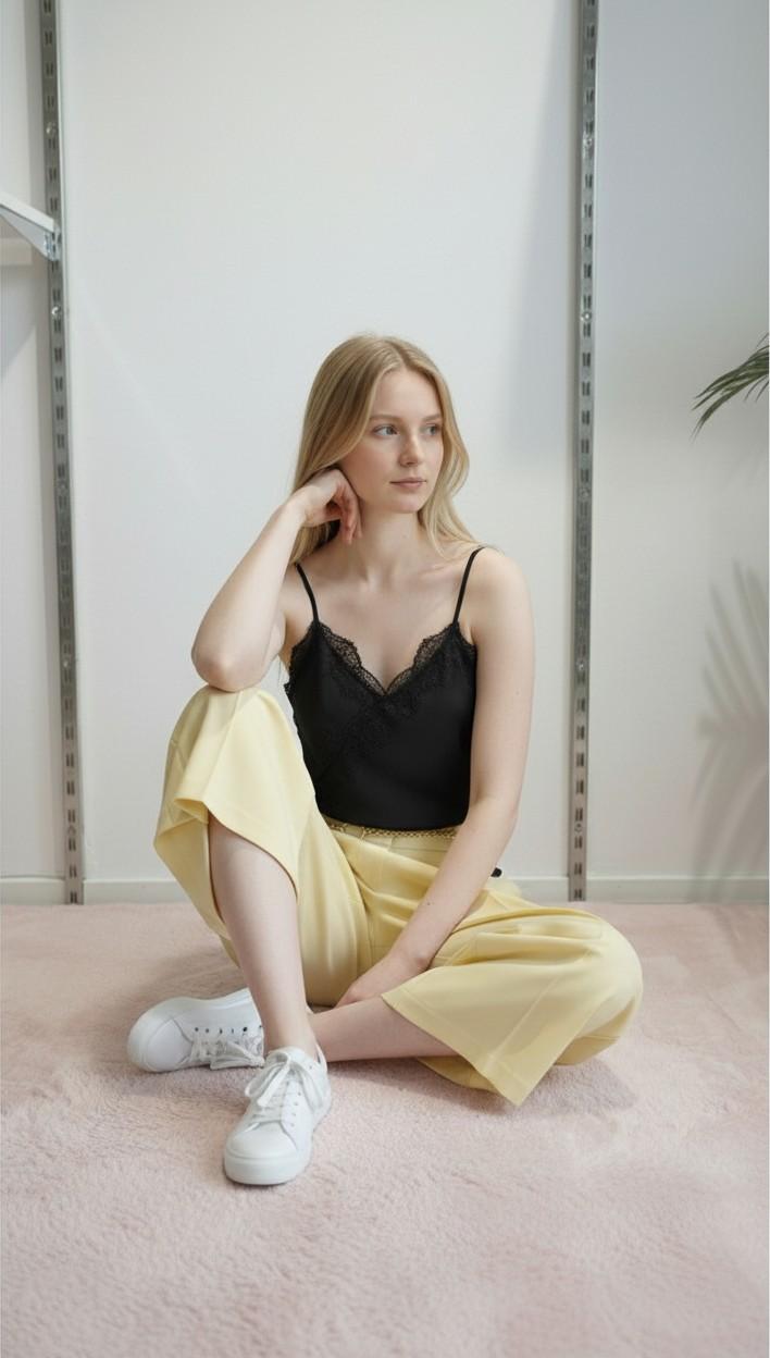 Questo pantalone da donna modello gonna-pantalone è la scelta ideale per chi desidera un capo elegante, fluido e contemporaneo, capace di unire il comfort del pantalone alla femminilità della gonna. Il design ampio e raffinato lo rende perfetto sia per l’uso quotidiano che per occasioni più curate. La costruzione con due pences frontali valorizza il volume del capo, donando movimento e una linea ordinata che richiama la sartorialità classica. Le tasche all’americana aggiungono praticità e pulizia al design, migliorando la vestibilità e offrendo una soluzione funzionale senza appesantire la silhouette. Il modello gonna-pantalone è particolarmente apprezzato per la sua versatilità: ampio sulla gamba, confortevole e facile da abbinare, si adatta a diverse fisicità e consente libertà di movimento mantenendo un aspetto elegante e moderno. Perfetto con camicie, top leggeri o maglieria sottile, è un capo essenziale nel guardaroba femminile.
